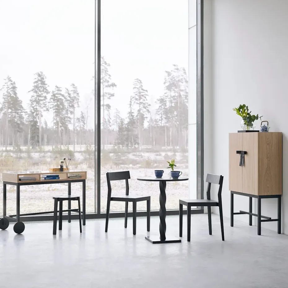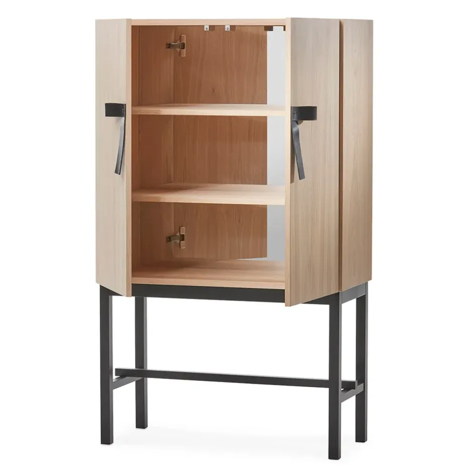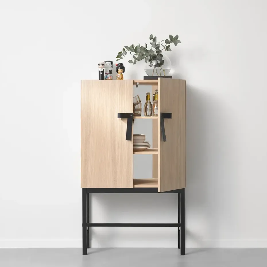 - Materiales: MarcoMateriales: Roble, chapa de robleAcabado: Aceitado blancoDetallesCueroParte posteriorCristal de vidrioBaseMateriales: RobleAcabado: Teñido