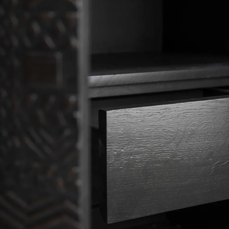 Módulo de estantería Zet, Natural oak, 1×2, black steel base