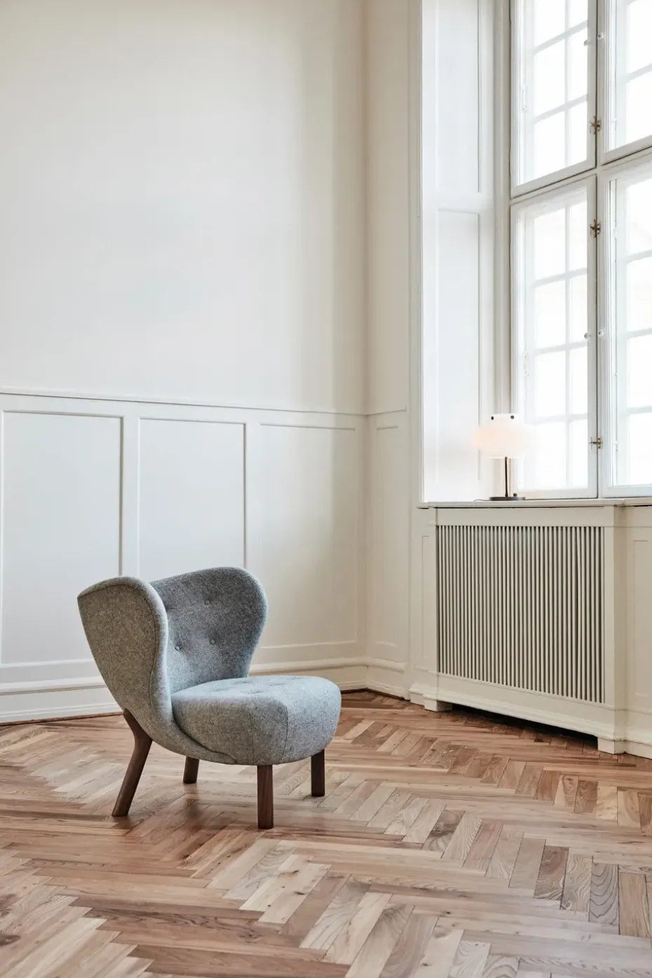 - Materiales: Tapizado70% lana, 30% viscosaRellenoEspuma de poliuretano, poliésterPataMateriales: Nogal (FSC)Acabado: Aceitado