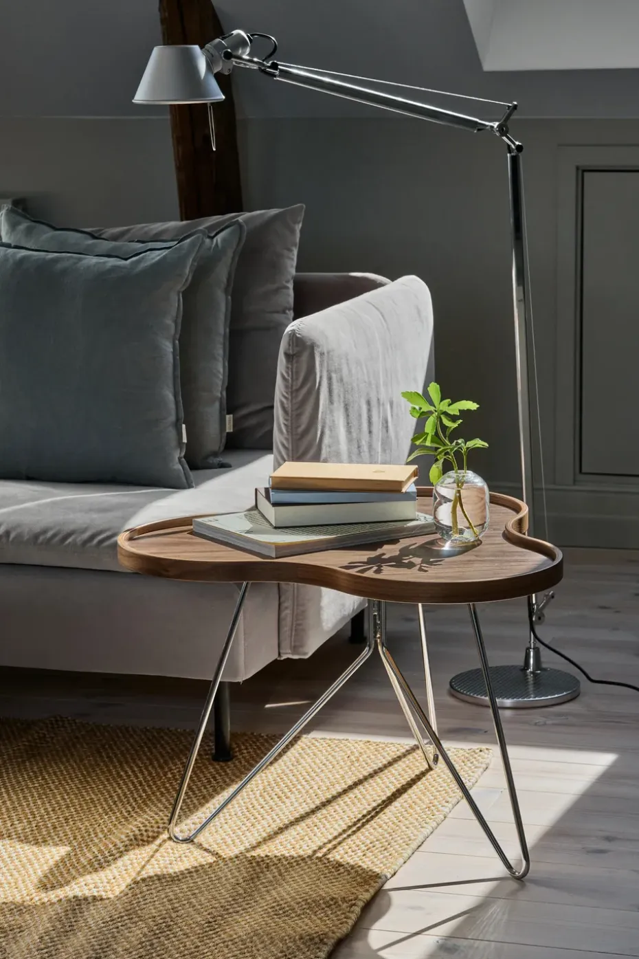 - Materiales: Tablero de mesaMateriales: NogalAcabado: LacadoPataMateriales: AceroAcabado: Cromado