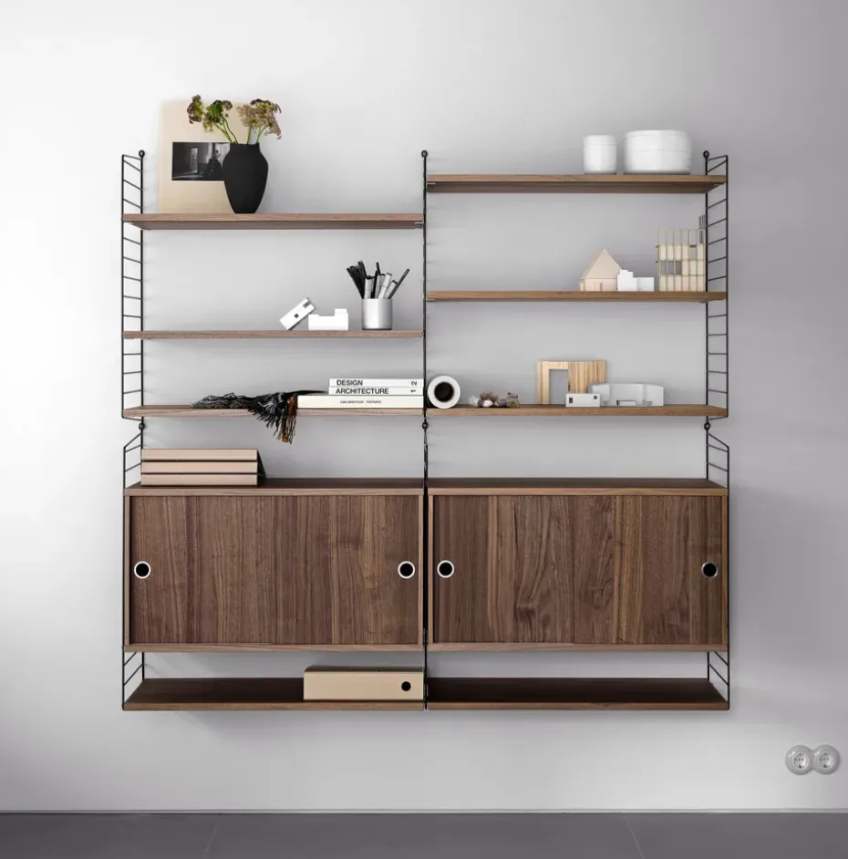 Módulo de estantería Zet, Natural oak, 1×2, black steel base