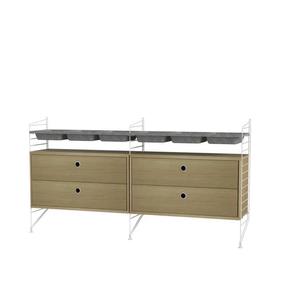 Módulo de estantería Zet, Natural oak, 1×2, black steel base