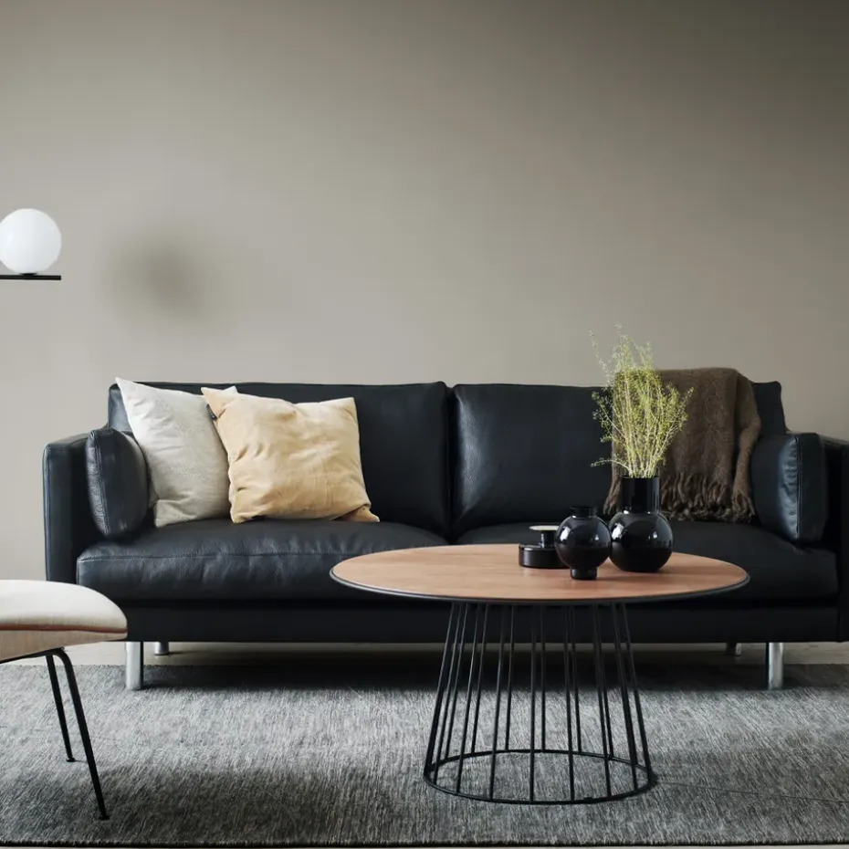 - Materiales: BaseHaya, aceroRellenoEspuma fría, pluma, plumón, fibra, poliésterTapizadoCueroPataMateriales: RobleAcabado: Lacado
