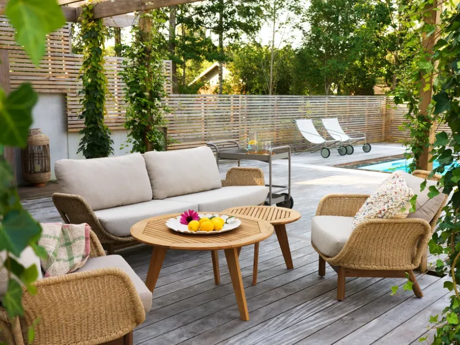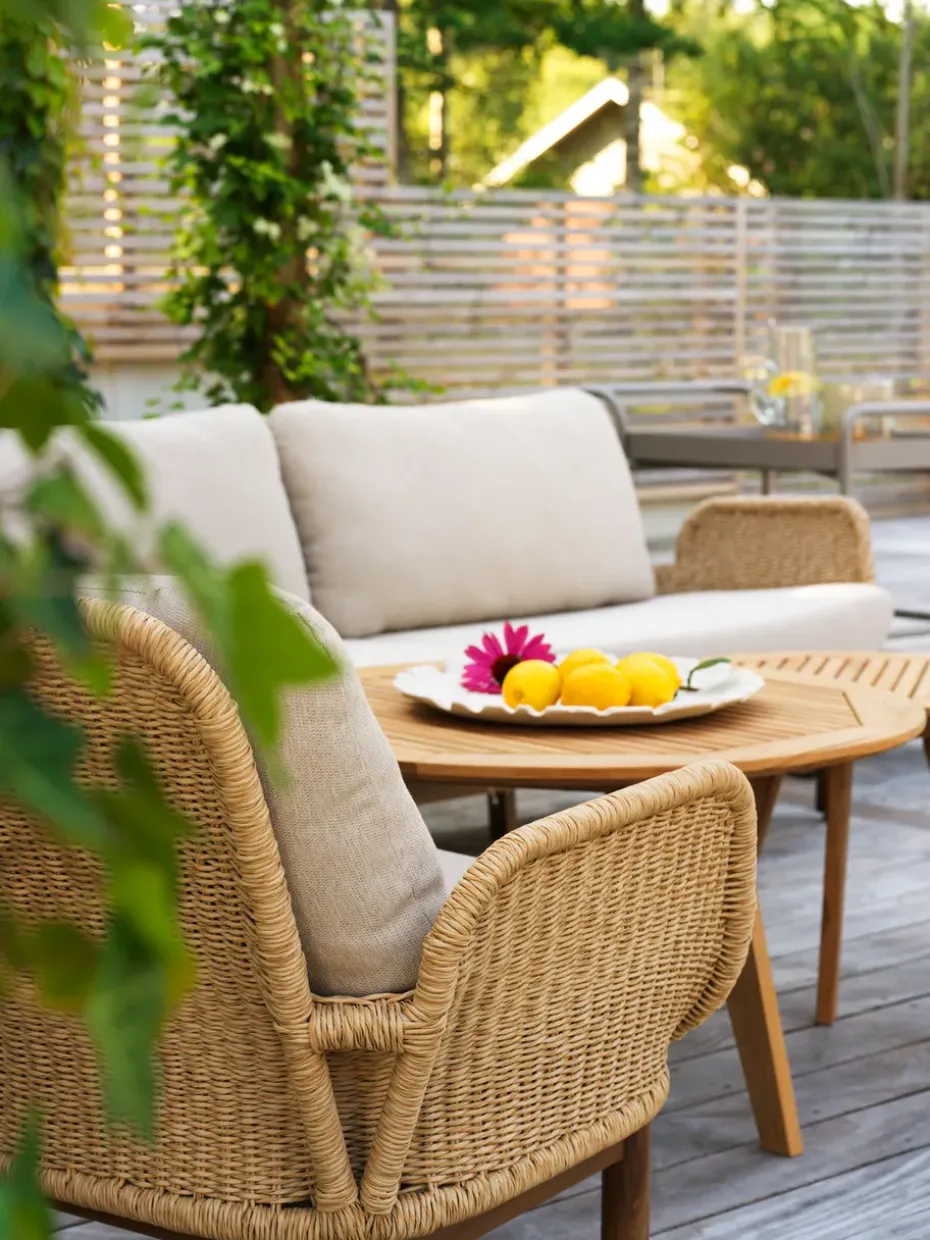 - Materiales: Aluminio, polirratán, teca