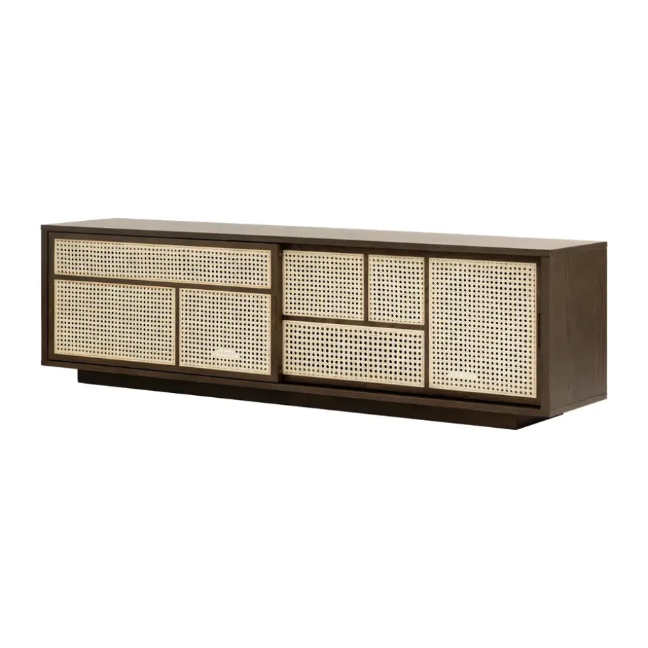 - Materiales: Materiales: MDF, poliuretano, chapa de roble, roble, ratánAcabado: Lacado