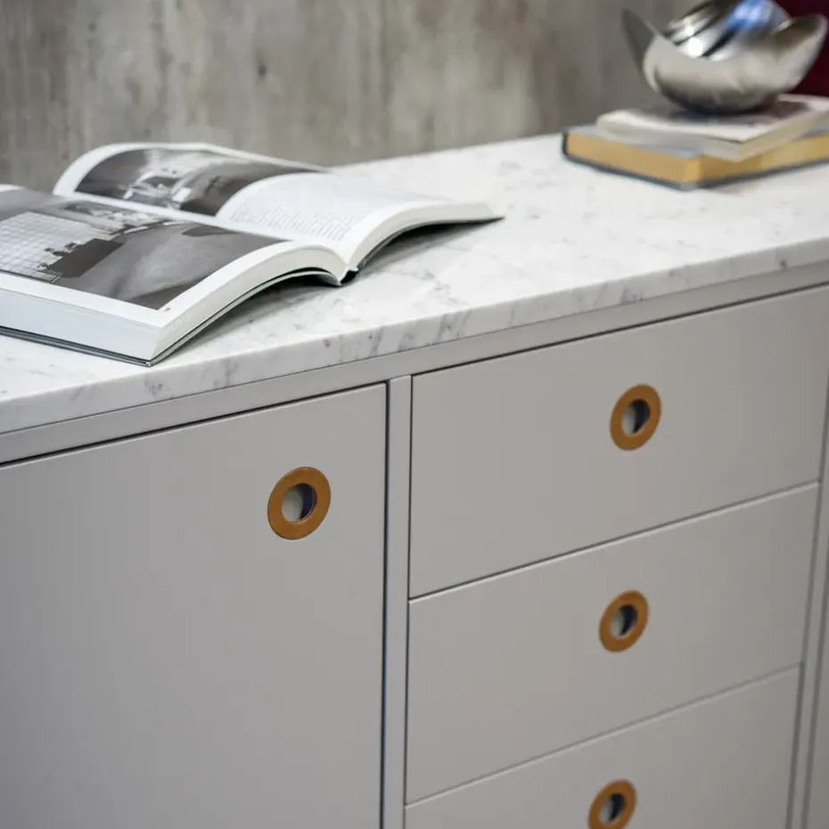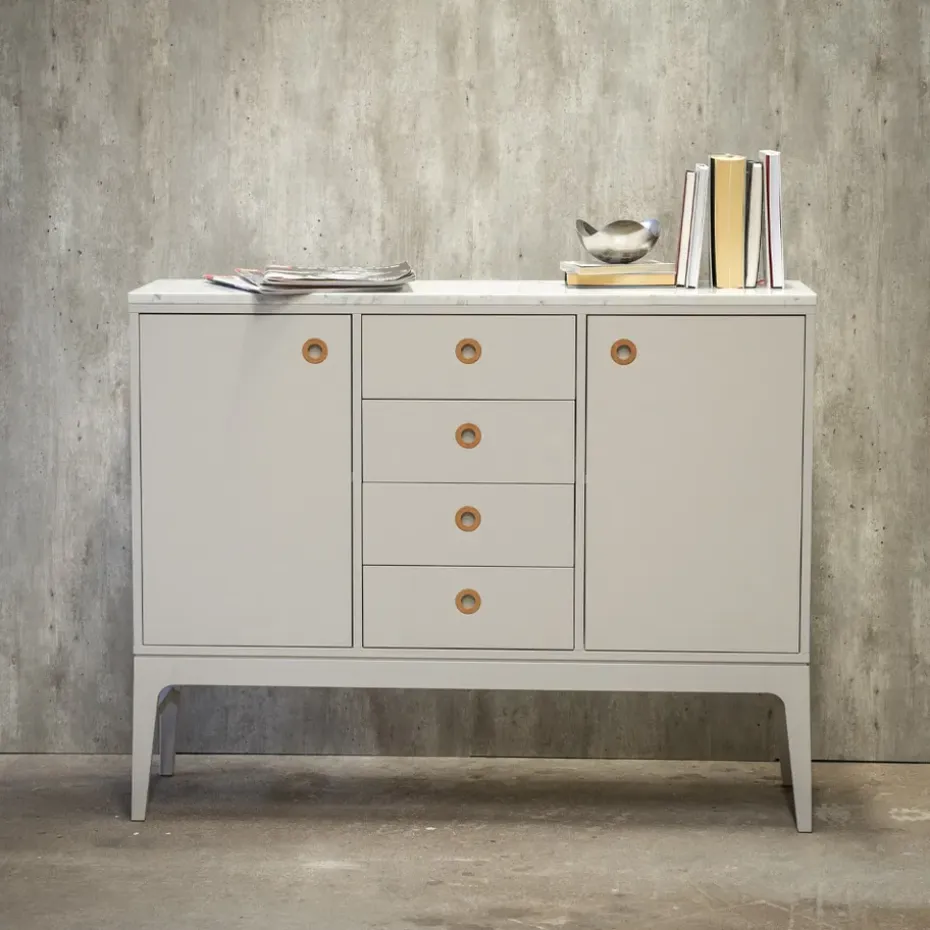 - Materiales: Materiales: MDFAcabado: LacadoDetallesCuero