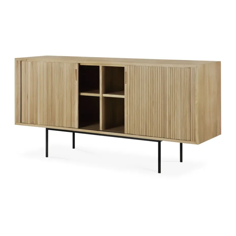 Módulo de estantería Zet, Natural oak, 1×2, black steel base