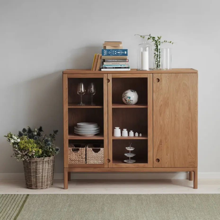 - Materiales: Materiales: Roble, vidrioAcabado: Aceitado blanco
