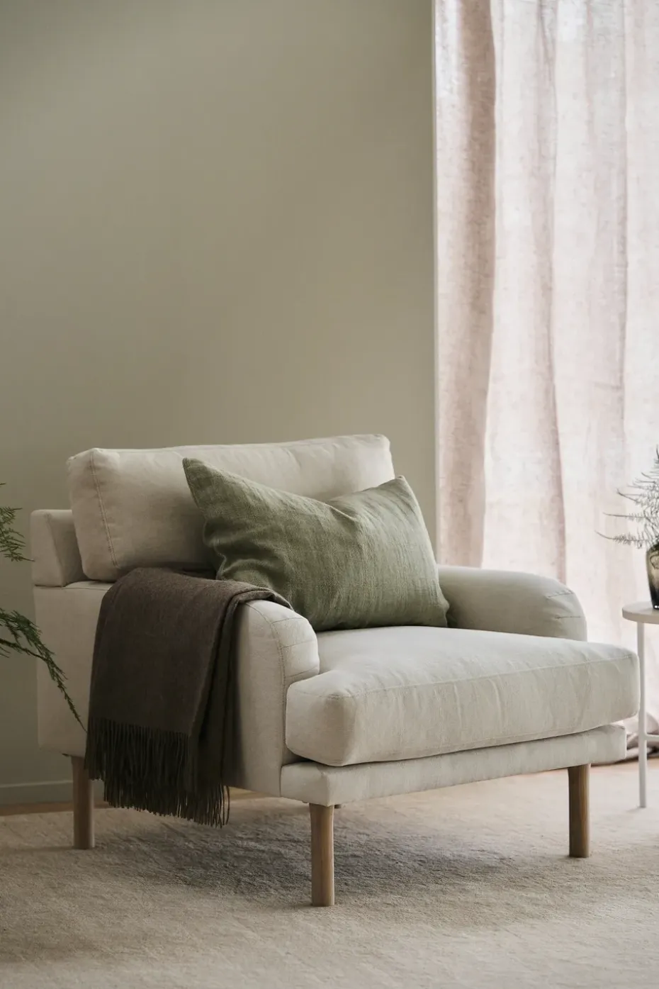 - Materiales: Tapizado63% algodón, 37% linoBasePino, abetoRellenoEspuma fríaPataRoble