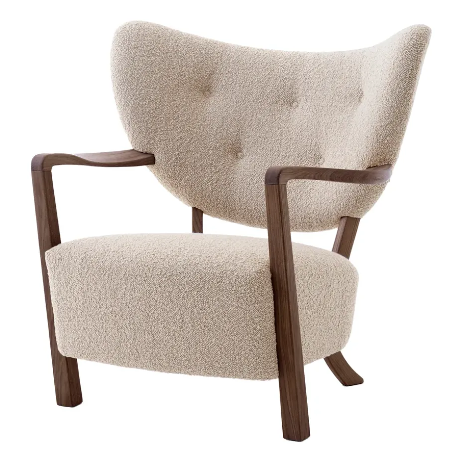 - Materiales: Tapizado42% lana, 33% viscosa, 24% algodón, 1% nylonRellenoEspuma de poliuretano, poliésterPataMateriales: Nogal (FSC)Acabado: Aceitado