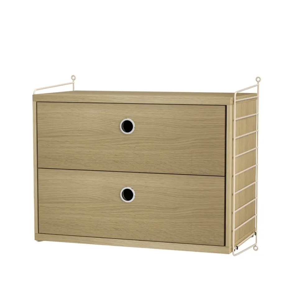 Módulo de estantería Zet, Natural oak, 1×2, black steel base