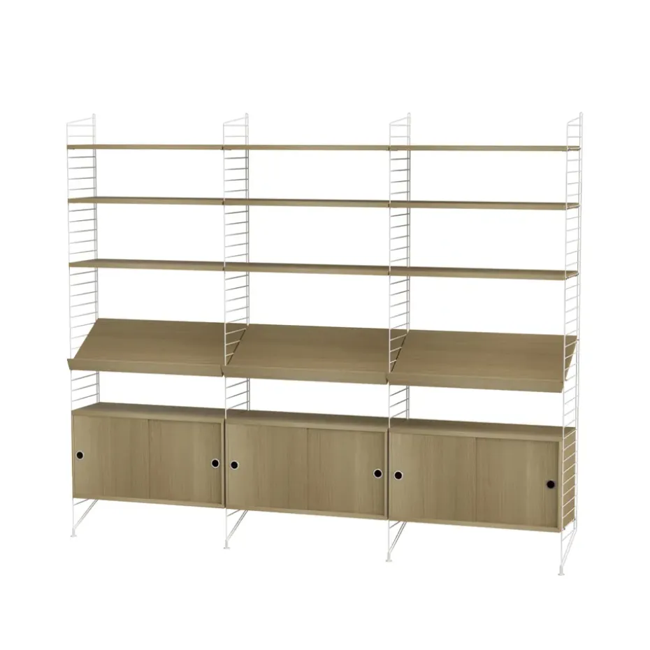 Módulo de estantería Zet, Natural oak, 1×2, black steel base