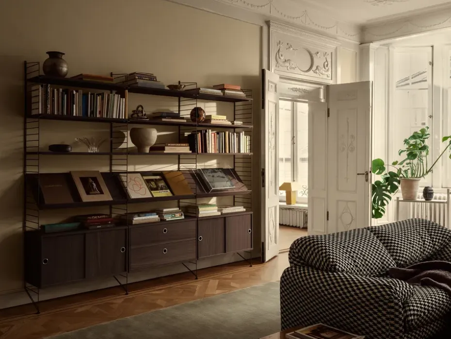 Módulo de estantería Zet, Natural oak, 1×2, black steel base