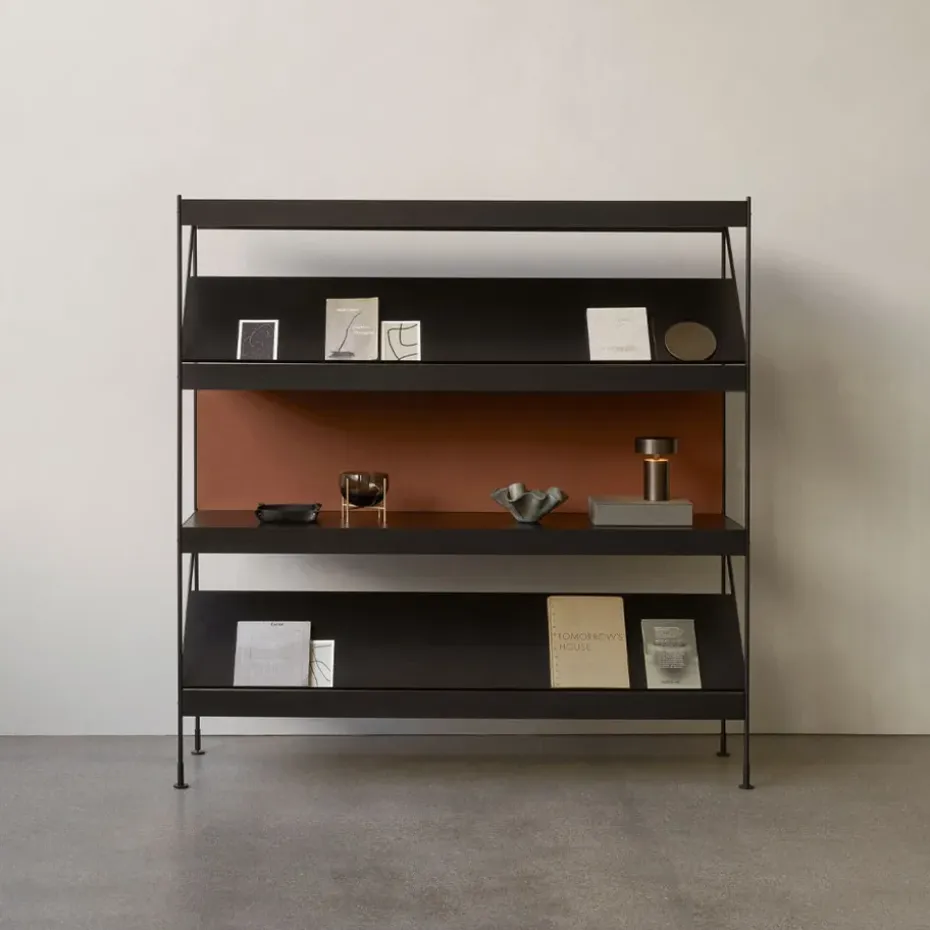 Módulo de estantería Zet, Natural oak, 1×2, black steel base