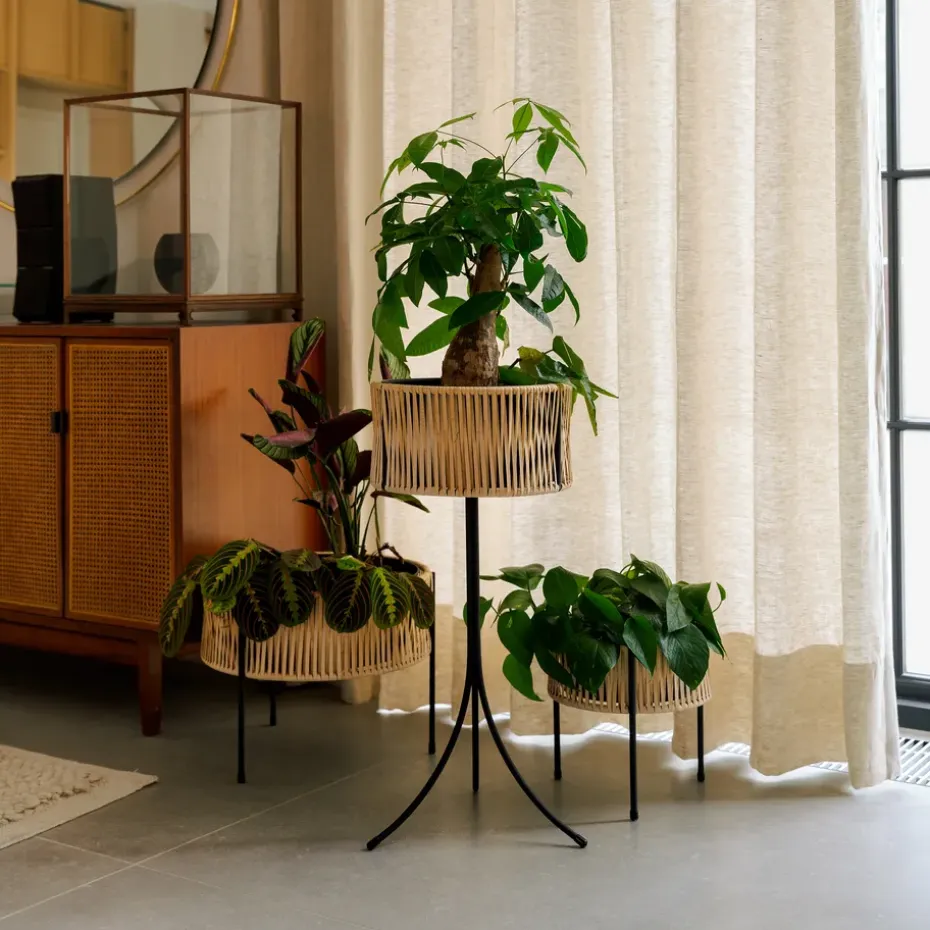 - Materiales: Materiales: Acero, ratánAcabado: Con revestimiento en polvo