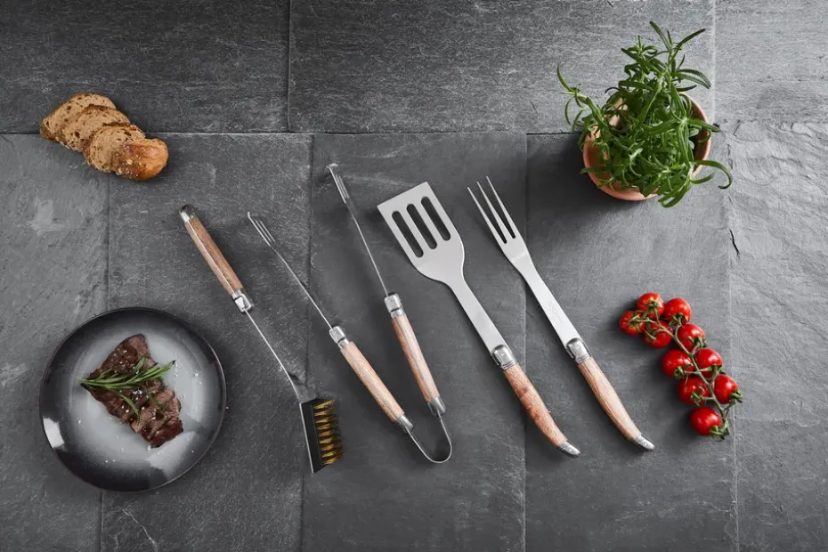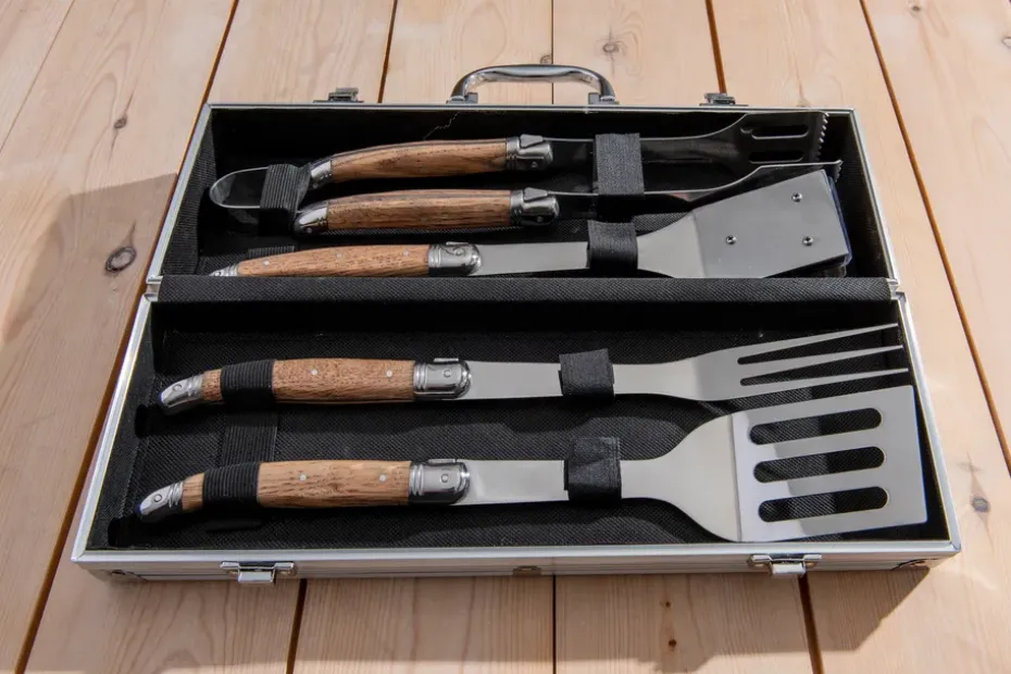 - Piezas incluidas: 1 pinza para barbacoa de roble1 espátula para barbacoa de roble1 cepillo para barbacoa de roble1 tenedor para barbacoa de roble