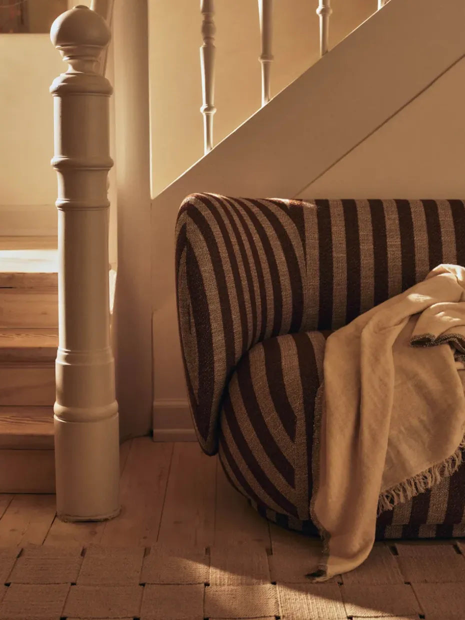 - Materiales: Tapizado24% viscosa, 22% lino, 18% poliéster, 13% lana, 13% algodón, 10% acrílicoRespaldoEspuma, aceroAsientoEspuma de poliuretano, maderaPataPolietileno