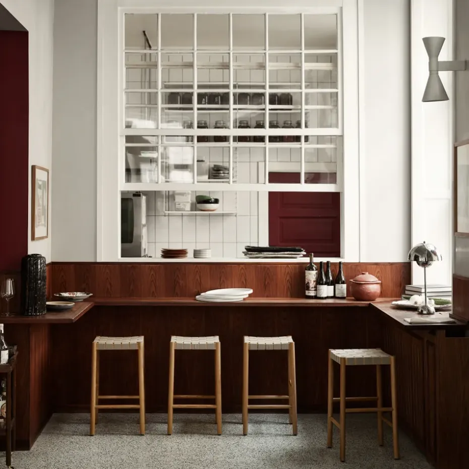 - Materiales: MarcoMateriales: Roble, chapa de robleAcabado: LacadoAsientoLinoDetallesAcero