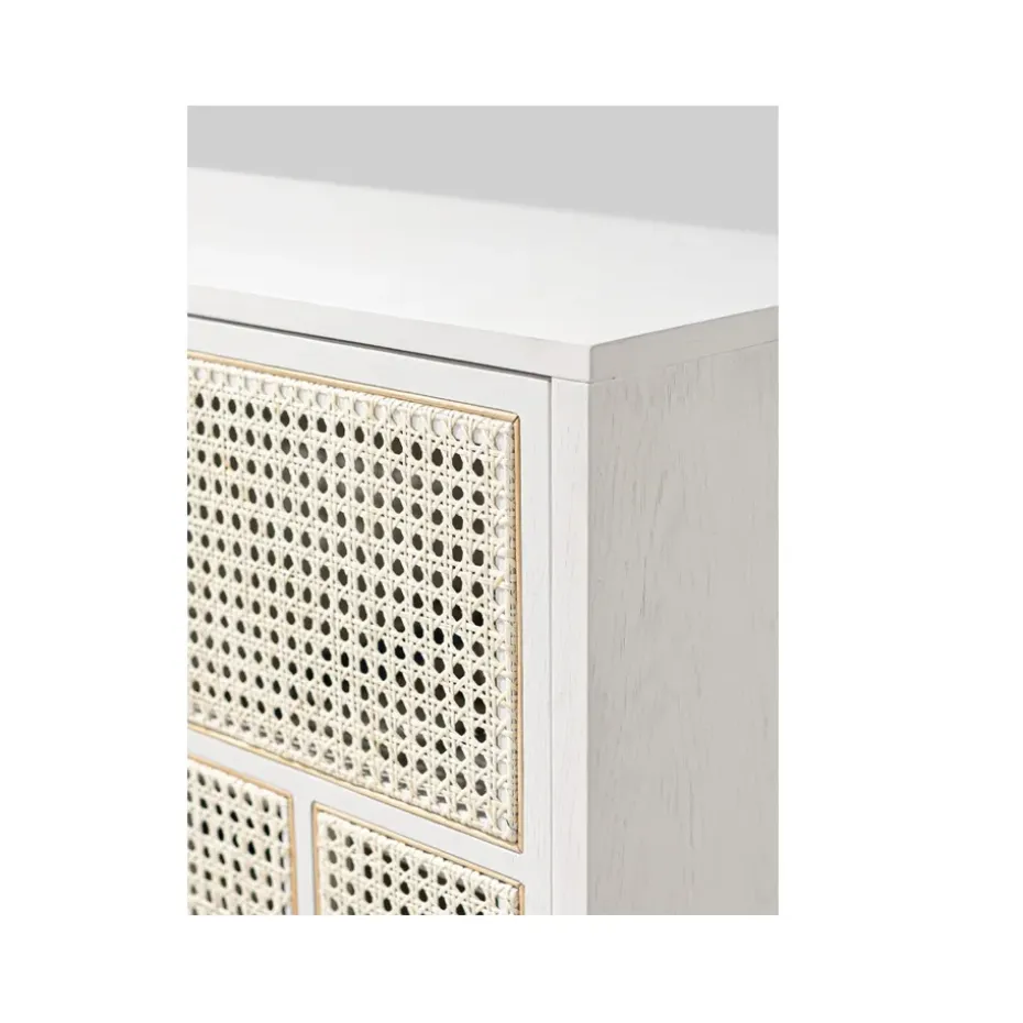 - Materiales: Materiales: MDF, ratán, chapa de robleAcabado: Teñido