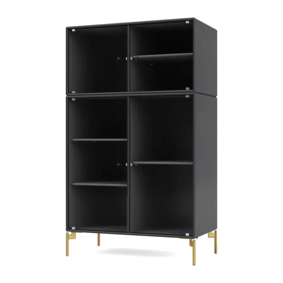 Módulo de estantería Zet, Natural oak, 1×2, black steel base